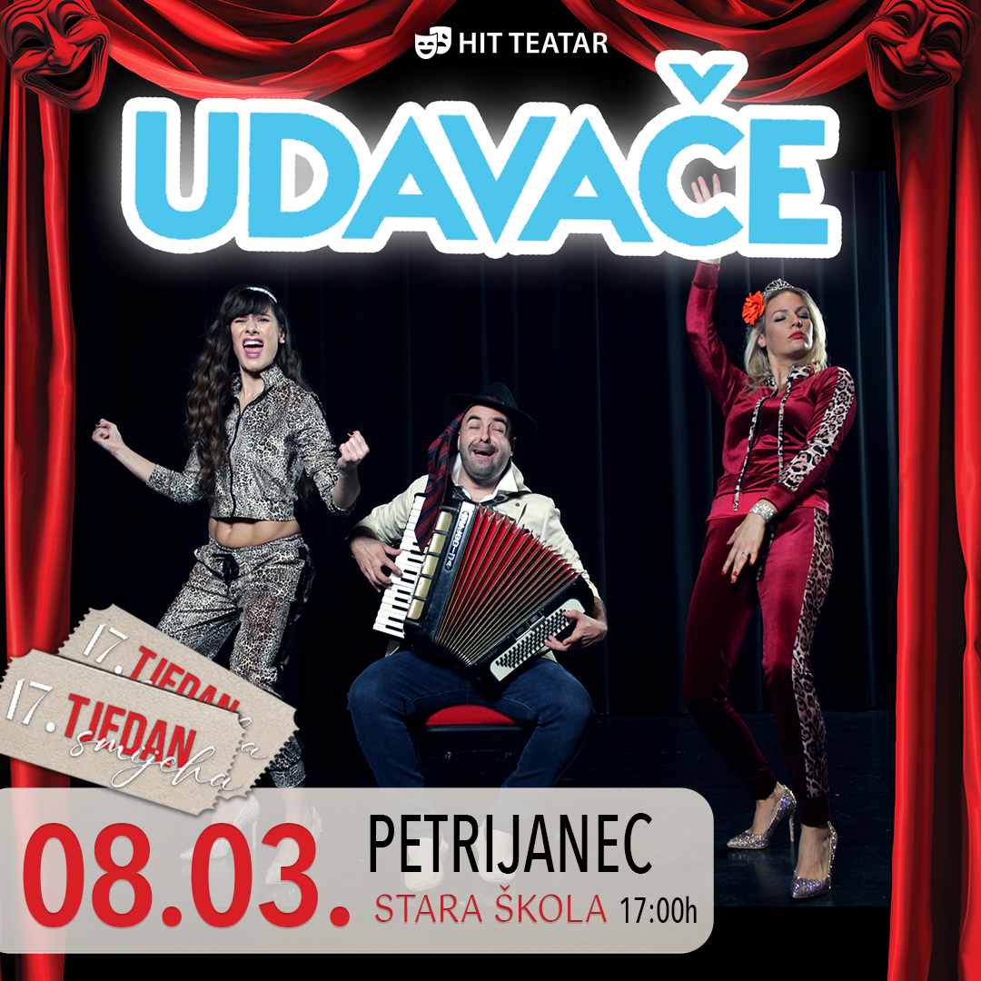 Kazališni hit “UDAVAČE” britkim humorom baca svjetla reflektora na moderna vjenčanja i propitkuje široku lepezu različitih svadbi kakve niste mogli ni zamisliti, kao i razloge koji pojedince dovode do sudbonosnog DA. Od neobičnog romskog vjenčanja, vjenčanja luckaste bakice u Las Vegasu pa sve do svadbe iz koristi radi financijskog poticaja OPG-a, čak petnaest šarolikih likova iz svakodnevnog života koji je uvijek pun (ne)ugodnih iznenađenja utjelovljuje izvrstan glumački trio- Matea Elezović Brdar, Jan Kerekeš i Erna Rudnički -donoseći hipnotizirajuću magiju kazališta koja će vas zabaviti i zamisliti. Matko Elezović ovim je tekstom opet dokazao zašto je jedan od najizvođenijih hrvatskih komediografa.