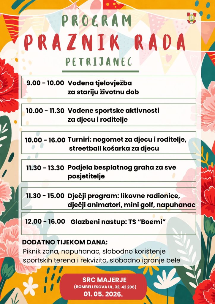U petak, 1. svibnja 2026., od 9 sati, SRC Majerje (Bombellesova ul. 32, Majerje) bit će mjesto okupljanja za sve generacije bez s naglaskom na kretanje, druženje i dobru atmosferu.
